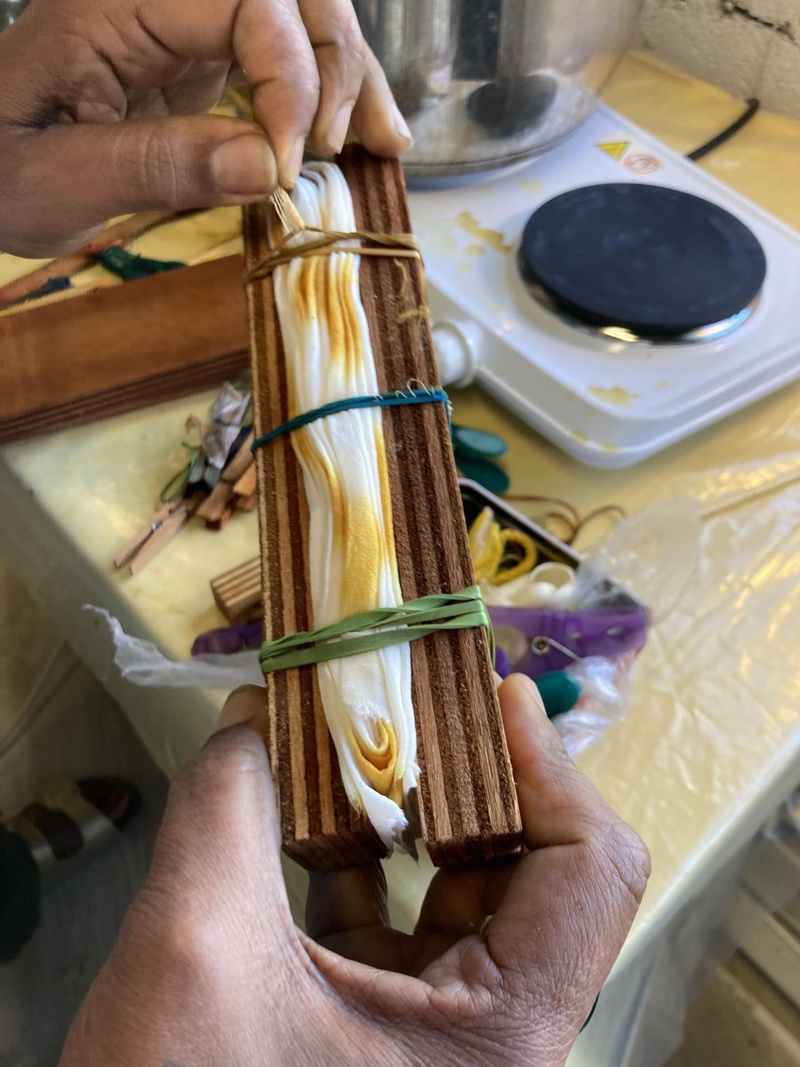 Lors de cet atelier, vous décvouvrirez les techniques pour créer des bains de couleurs naturelles et des motifs inspirés de l'art japonais du shibori. Vous explorerez les nuances obtenues à partir de bains de plantes locales, et réaliserez votre propre foulard coloré en expérimentant les techniques de pliage et de nouage du shibori